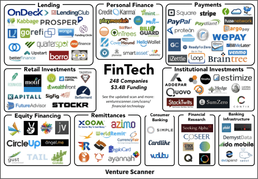 このようなお金に関わるイノベーティブなサービスをフィンテックと言われ、上記のマップにあるように多種多様なプレイヤーが活躍し始めています。